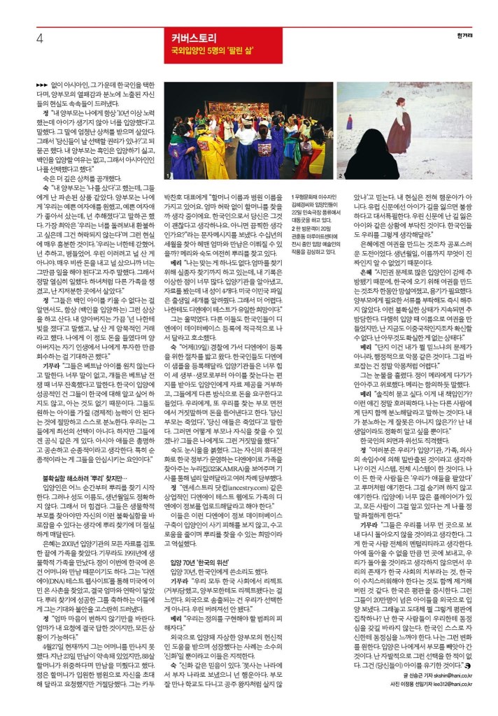 은혜 “시민권 문제로 많은 입양인이 강제 추방됐기 때문에, 한국에 오기 위해 여권을 만드는 것조차 한동안 망설여졌고, 용기가 필요했다. 양부모에게 필요한 서류를 부탁해도 즉시 해주지 않았다. 이런 불확실한 상태가 지속되면 추방당한다. 다행히 입양 때 이름으로 여권을 만들었지만, 난 지금도 이중국적인지조차 확신할 수 없다. 난 아무것도 확실한 게 없는 상태다.”