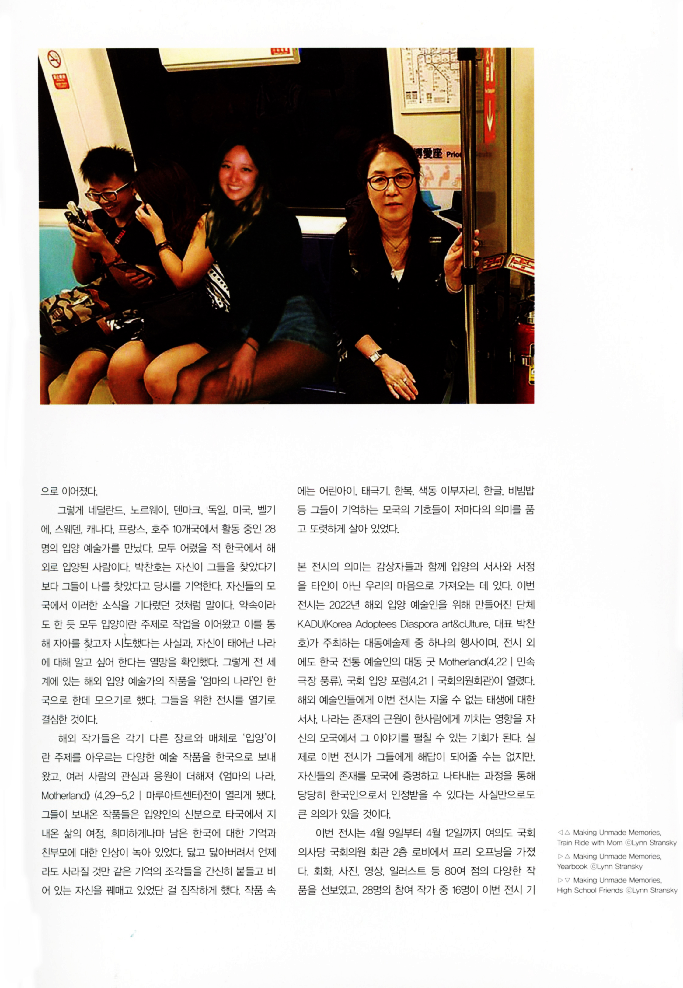 Llyn Stransky is a Korean-American artist based in New York. Active under the name ‘Jeong’ after her Korean surname, she explores how changes in identity shape our collective. Her work, Make Unmade Memories, is a work of imagining the memories that were taken away through overseas adoption and those that were not realized. The author commissioned an organization called ‘23 and Me’ in the United States to analyze DNA, and in the process, he happened to know his cousin, and through him he heard the news that his brother Sam was in the United States. He went to find out that his birth mother, whom he thought was dead, was alive with his brother. It is said that the biological mother has not acknowledged the existence of the artist until now.