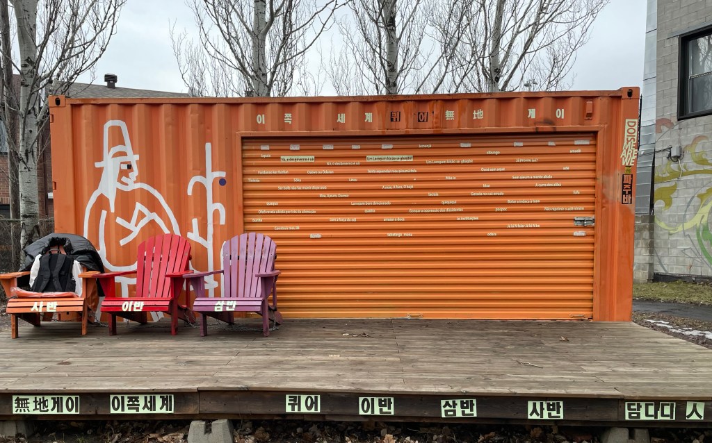 Le jeudi 24 mars (de 5 à 7), l’intervention MEAREWE célèbre son 100e jour. Venez célébrer au Parc Sainte-Cunégonde – 2275 Notre-Dame Ouest (métro Lionel-Groulx) et rencontrer DOIS (fernando belote + kimura byol lemoine) et vous réchauffer avec des connexions humaines, partager la transmission orale des savoirs, boire du thé chaud, écouter des K7, ainsi qu’un rituel Shinto. Sur ce site extérieur, venez re-configurer les mots queer du lettrage (B)Pajubá et Hangeul (écriture coréenne).
